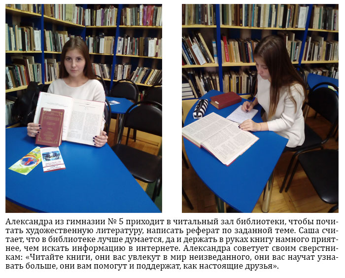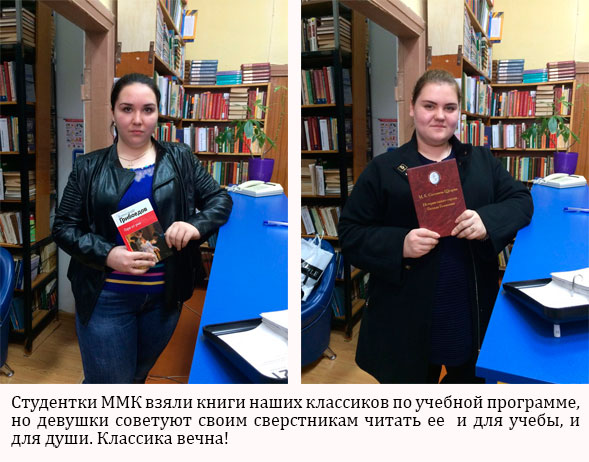 Щирова Екатерина — ученица группы 1 «Б» курса пед.колледжа им. Х.Андрухаева — очень любит читать книги и не раз отзывалась о нашей библиотеке, как о самой лучшей в городе!